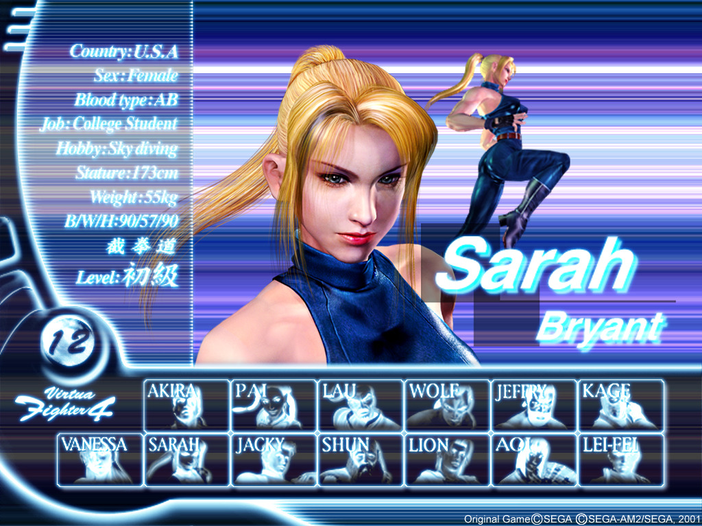 Should I be ashamed to admit that I had a crush on Sarah when I was 11 years old, in '94? :) Sarah was a great fighting game heroine for all the right reasons. Great kicks. Great combos. Spandex body suit. The 90's were good times. Sarah was the