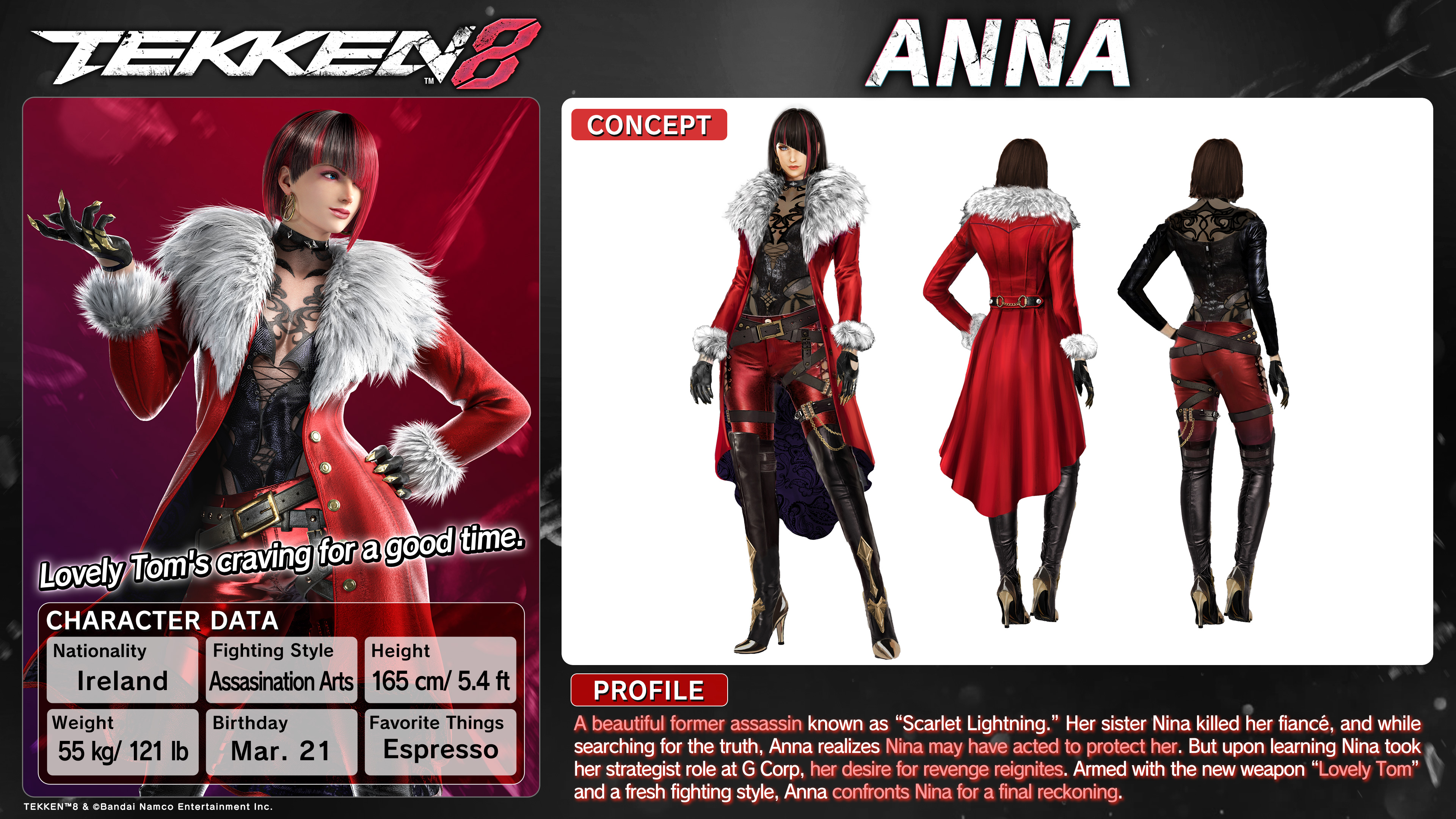 personality. Her height is 159cm (the shortest girl in TEKKEN 8).